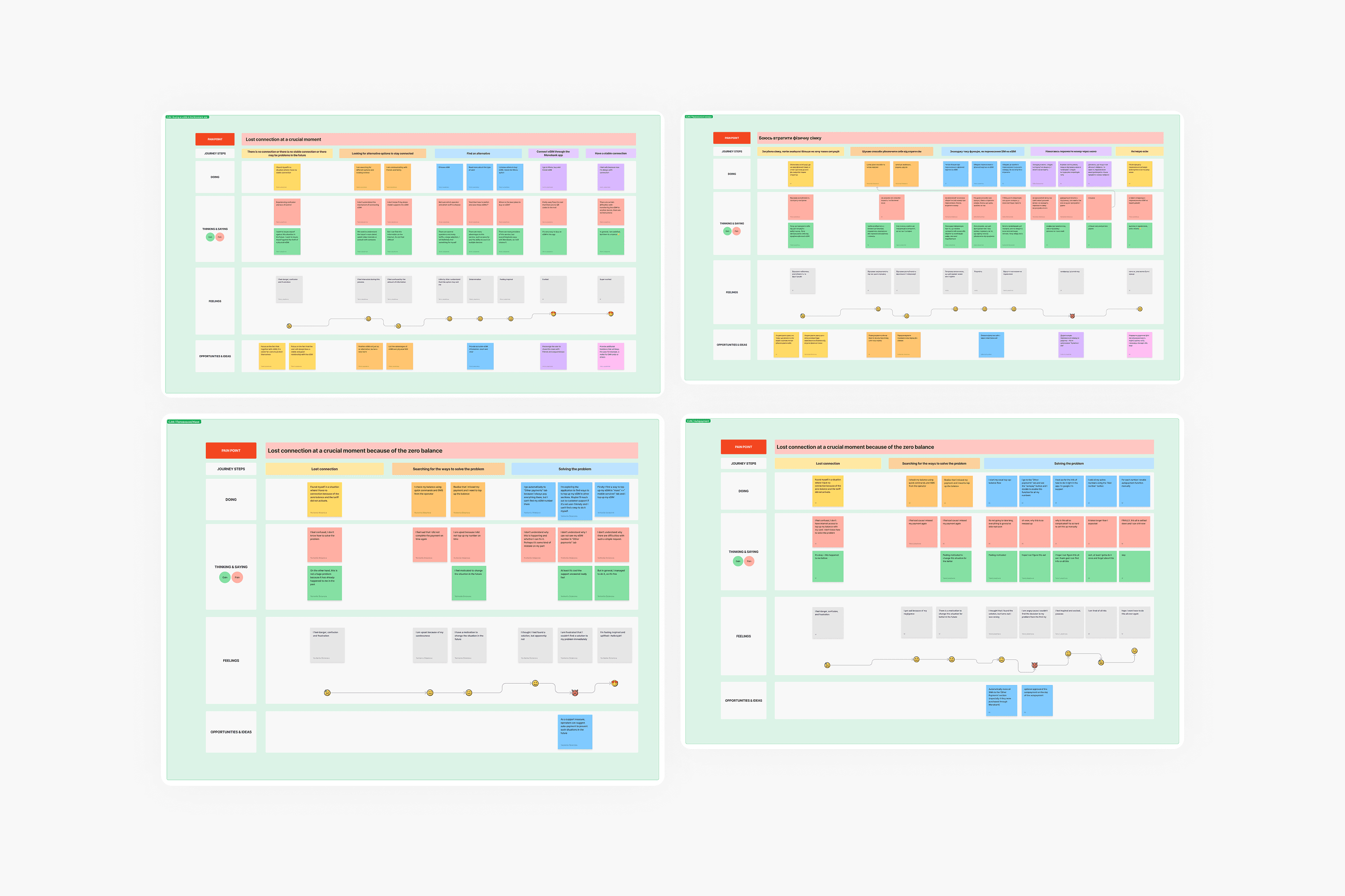 To visualize user processes, we created four Customer Journey Maps that detail the flows for: