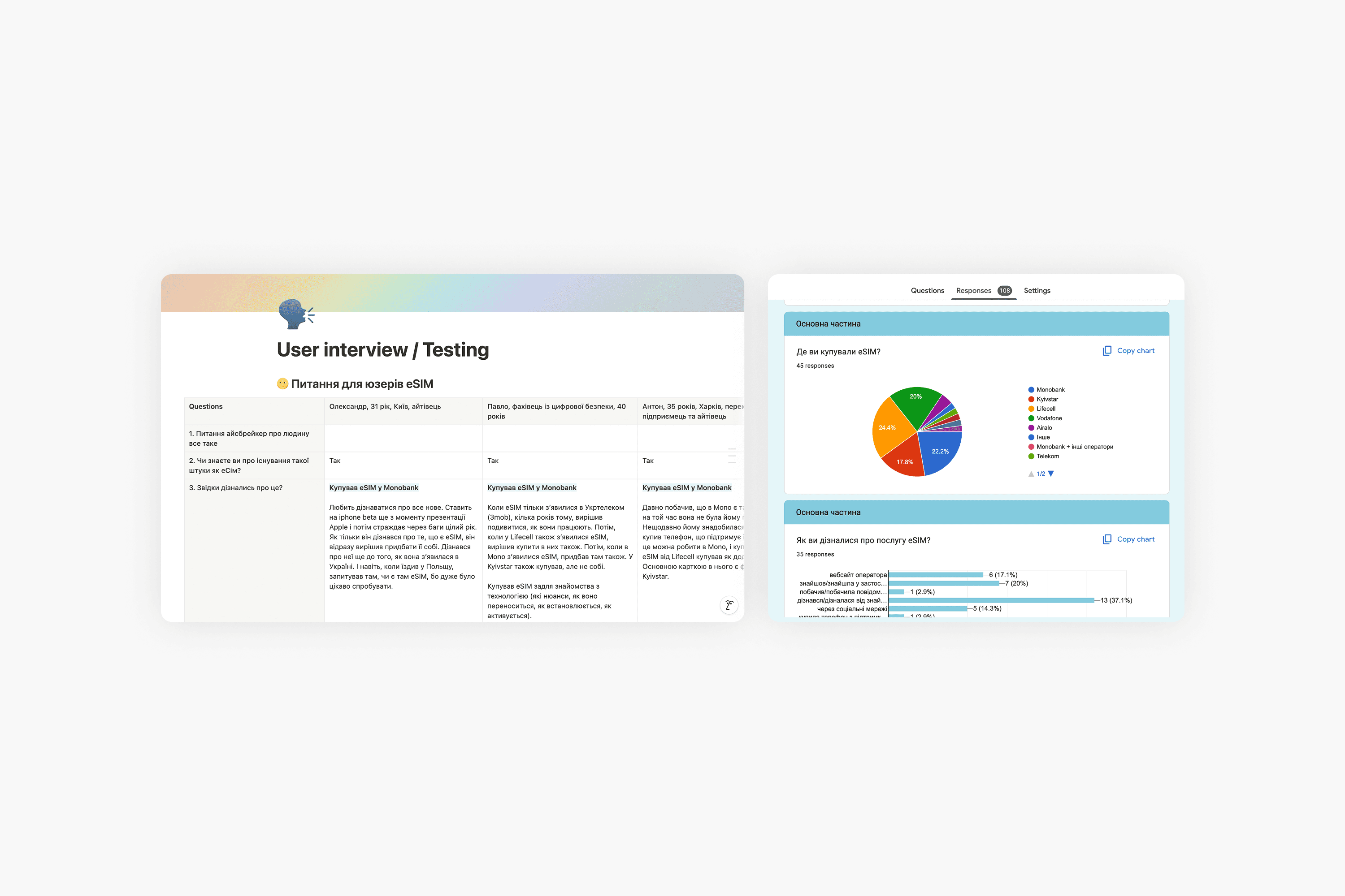We conducted 11 user interviews with current eSIM users and 5 potential eSIM users. These interviews provided invaluable insights into user experiences and expectations related to eSIM purchases.